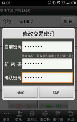 ◇ 設(shè)置成功之后,彈出密碼設(shè)置成功,需要重新登錄交易。