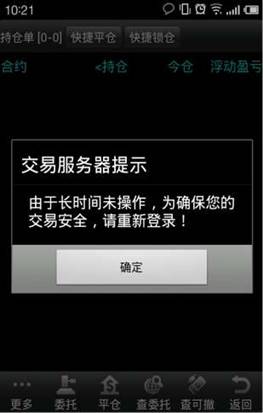 ◇ 當(dāng)您登錄交易帳號(hào),在 20 分鐘內(nèi)沒(méi)有任何行情功能和交易功能的操作,為了保障資金