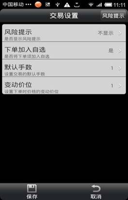 ◇ 點(diǎn)擊“更多”--“交易設(shè)置”,左側(cè)顯示為橙色為啟用狀態(tài)。