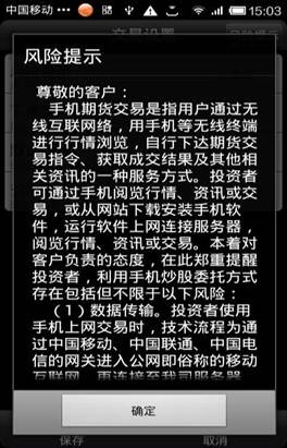 ◇ 風(fēng)險(xiǎn)提示:選擇右上角“風(fēng)險(xiǎn)提示”時(shí),在登錄交易的時(shí)候就會(huì)出現(xiàn)風(fēng)險(xiǎn)提示對(duì)話(huà)框。