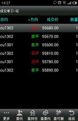 ◇ 查成交:點(diǎn)擊“查成交”,進(jìn)入成交單界面,可以查看到已經(jīng)成交合約的詳細(xì)信息。