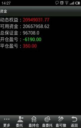 ◇ 查資金:點(diǎn)擊“查資金”,可查看到動(dòng)態(tài)權(quán)益、可用資金、總保證金、開(kāi)倉(cāng)盈虧、平倉(cāng)