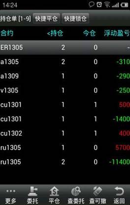 ◇ 查持倉(cāng):點(diǎn)擊“查持倉(cāng)”,可以看到持倉(cāng)的合約,在持倉(cāng)單界面可以對(duì)需要平倉(cāng)的合約