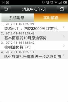 ◇ 再點擊“期貨日報”就可以查看到多條期貨日報新聞,選中其中一條,可以查看詳細的