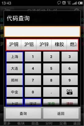 (2) 點擊“滬銅”,代碼查詢輸入框中會顯示出滬銅的所有品種。