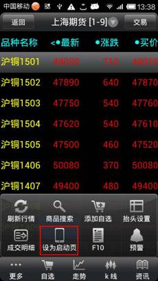 ◇ 將當前頁面設(shè)為啟動掌上財富后顯示的首頁,每次開機都顯示此頁面。(在系統(tǒng)設(shè)定中可刪除或在當前頁面“更多”中點擊“取消啟動頁”)