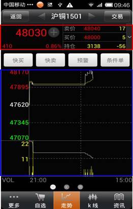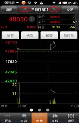 ◇ 點(diǎn)擊“走勢(shì)”,可進(jìn)入分時(shí)走勢(shì)界面